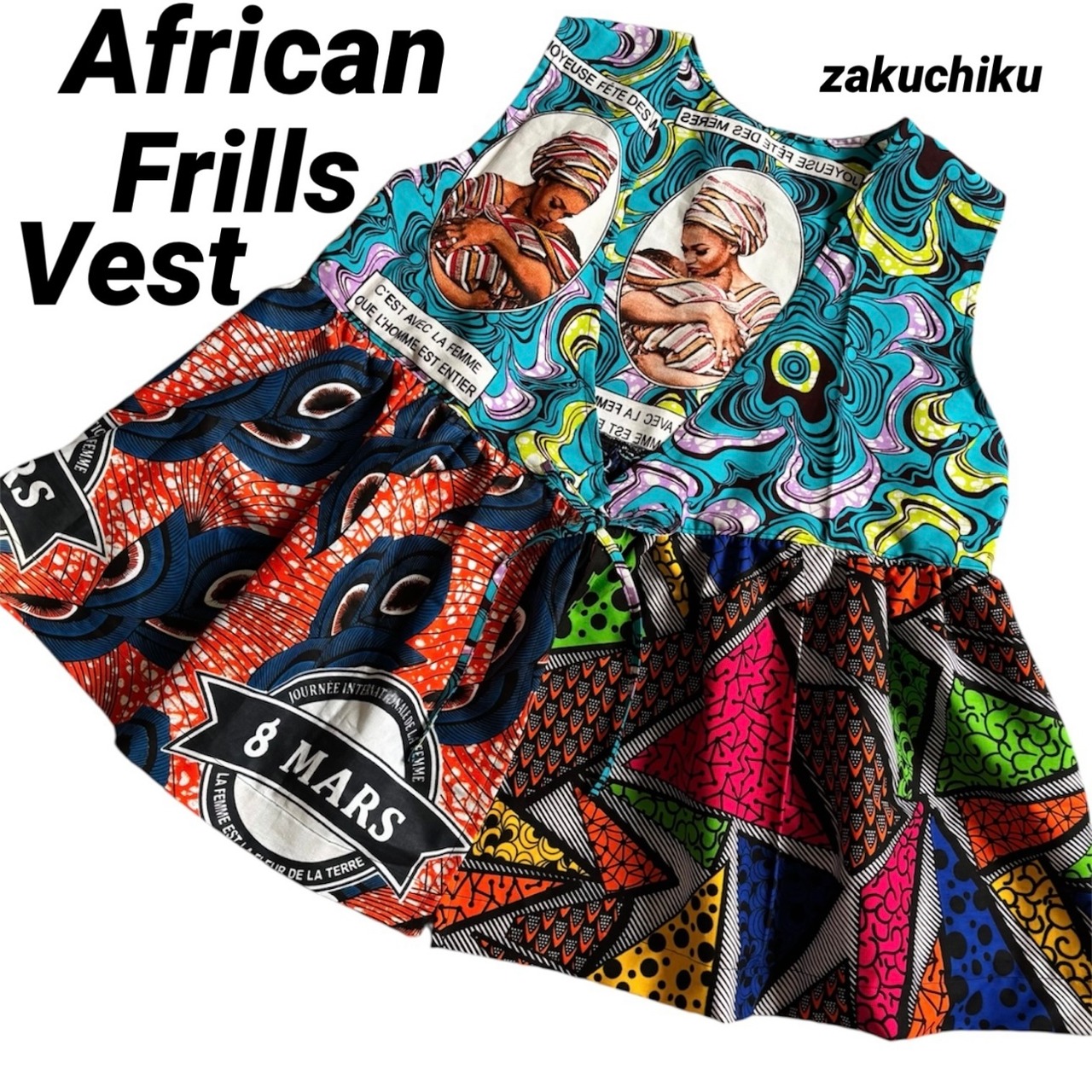 アフリカンバティック zakuchiku フリルギャザーベスト